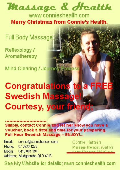 Connie, and Connie's Massage are offering Half price massage gifts this Christmas.